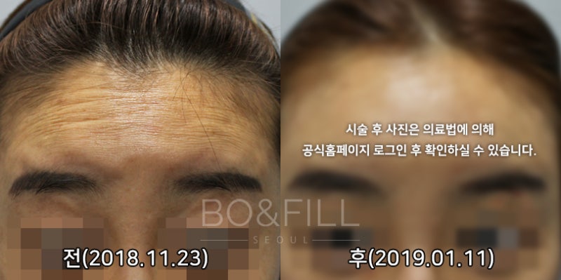 수술 2개월째 되던 날, 환자는 편안하고 깨끗한 눈으로 병원을 방문해 주었습니다. 무슨 말씀이신가요? 눈가 교정은 안검거근막 또는 뮬러근이라는 구조물을 단축시켜 눈을 잘 뜨도록 ‘도와주는’ 수술법입니다. 따라서 수술이 잘 되더라도 눈을 뜨는 습관이 고쳐지지 않으면 눈가 교정의 효과가 나타나지 않습니다.수술 전 이마나 눈썹을 너무 많이 사용하는 분들은 눈을 뜨는 올바른 방법을 모르는 경우가 많습니다. 수술 후에 “눈이 이렇게 뜨네요!!”라고 놀라시는 분들도 있습니다. 이 환자 역시 수술은 정상적으로 이뤄졌지만 수술 전 이마를 사용하던 습관이 고쳐지지 않아 이마 보톡스를 통해 눈썹의 올림머리를 차단하고 무리하게 눈을 뜨는 연습을 할 수 있는 환경을 조성했습니다.