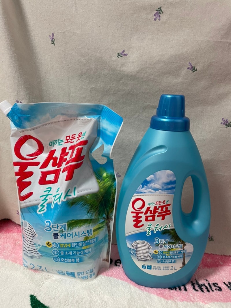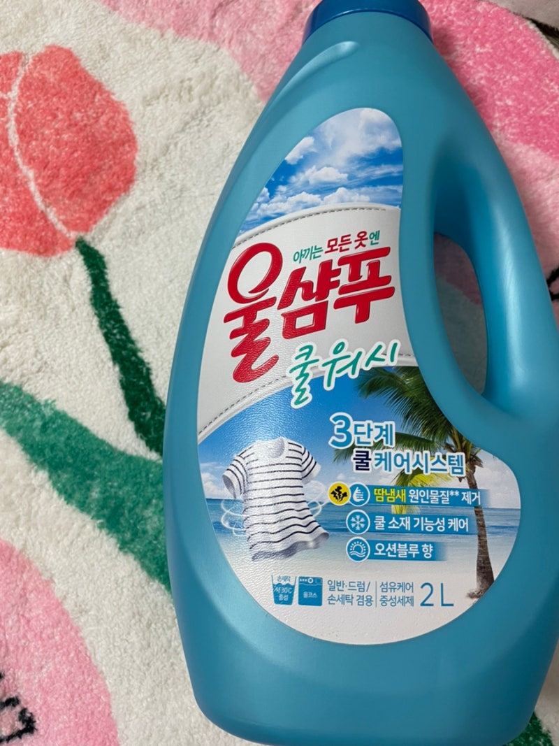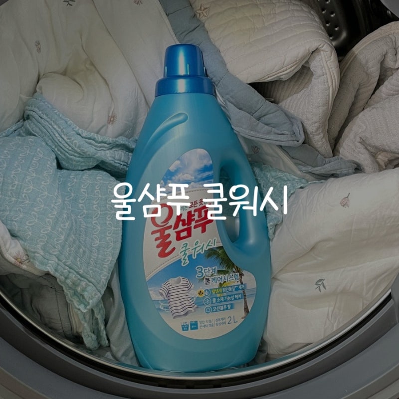#옷땀냄새제거 #세탁세제추천 울샴푸 쿨워시는 땀냄새의 원인물질을 제거하여 산뜻한 오션블루향으로 상쾌한~ 제품입니다.특히 저는 이불을 빨때도 조금씩 넣어 사용하고 있어요 매일 밤 땀이 나는 특성상 거의 일주일에 한번은 이불 세탁을 합니다 특유의 땀 얼룩이 남아있지 않더라구요
